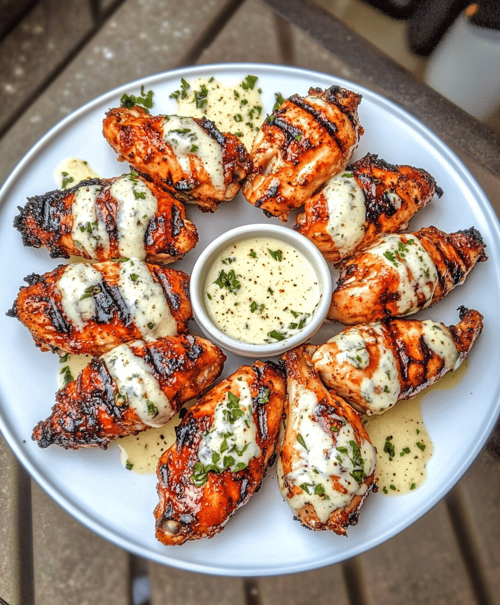 To serve, either drizzle the Alabama white sauce over the sliced chicken or serve it on the side for dipping. The contrast between the spicy char and the cool, creamy sauce is absolutely irresistible.