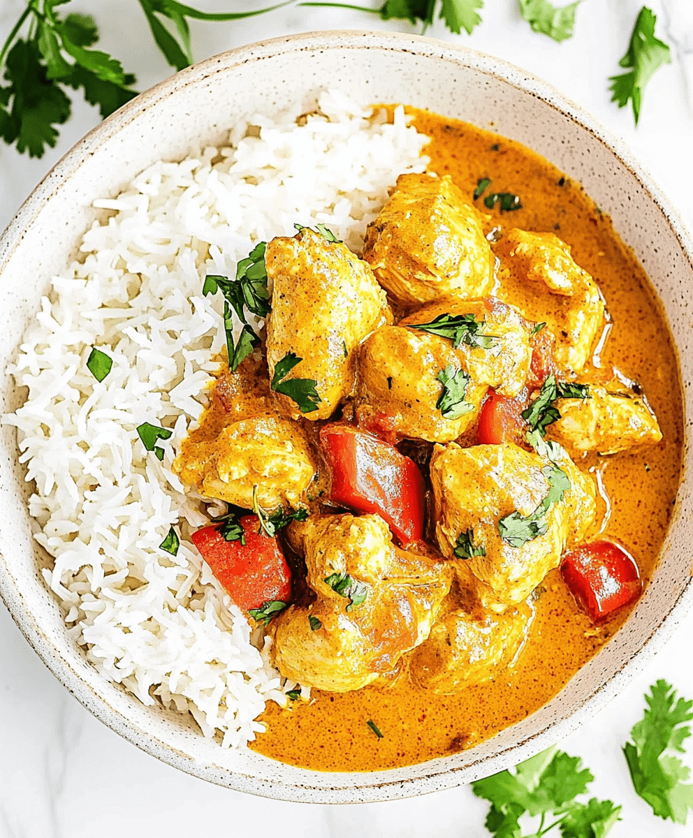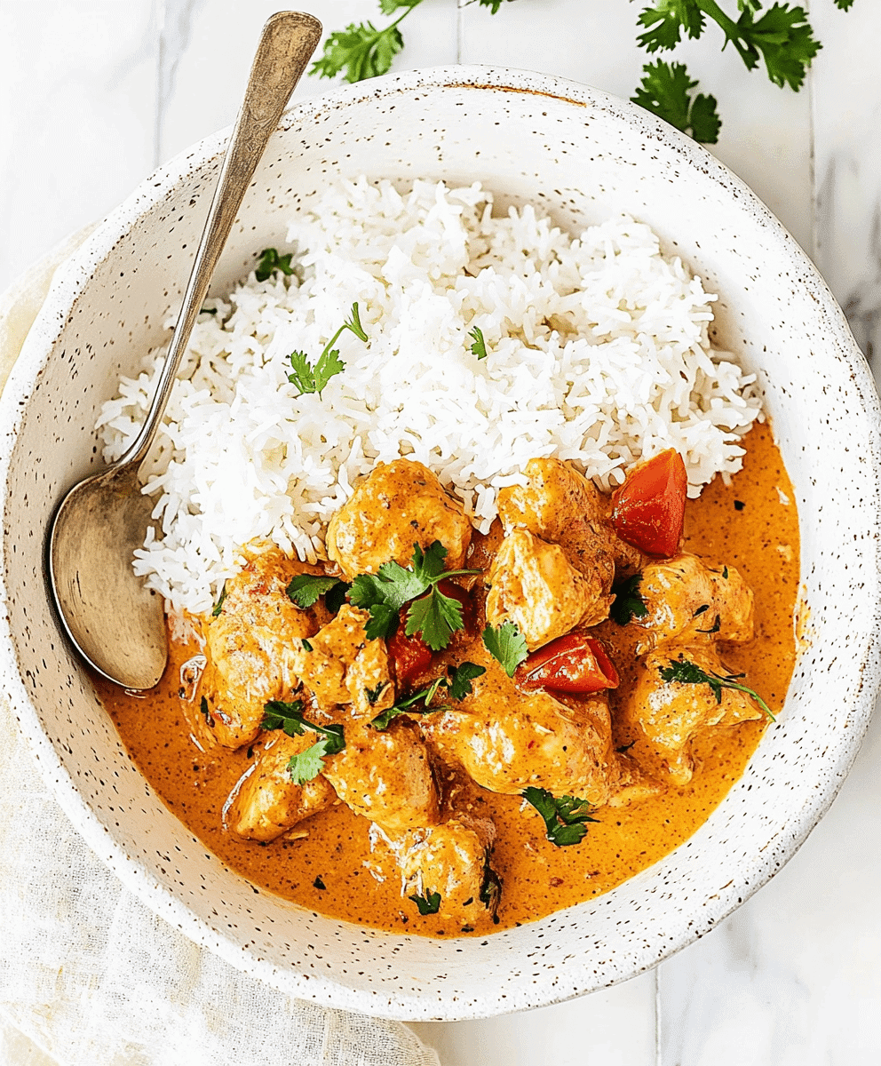 Another major win? It’s super versatile. Serve it over fluffy white rice, soak it up with naan, or spoon it onto quinoa or cauliflower rice for a lower-carb option. You can even swap the chicken for chickpeas or tofu for a vegetarian twist.