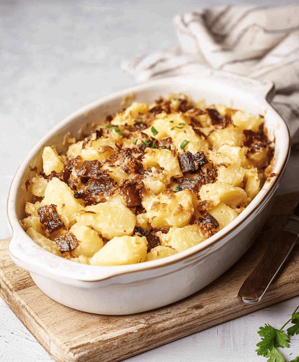 First, it’s all about the texture. You’ve got crisp-topped potatoes, melty cheese throughout, and bits of bacon in every bite. It’s rustic and indulgent in all the right ways.