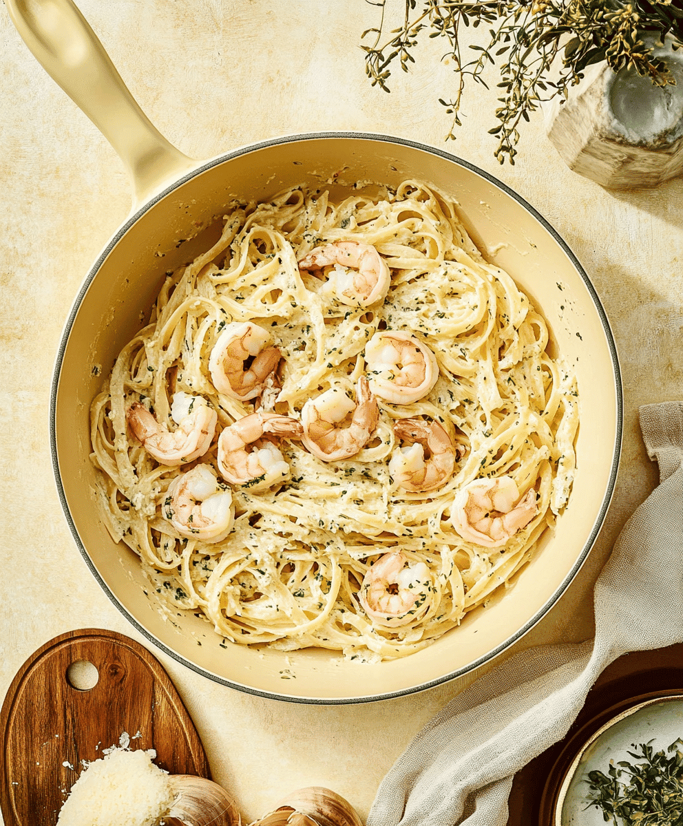 Return the shrimp to the pan, tossing to coat them in the sauce. Then add your drained pasta directly into the skillet, tossing everything together. If it seems dry, add a splash of the reserved pasta water.