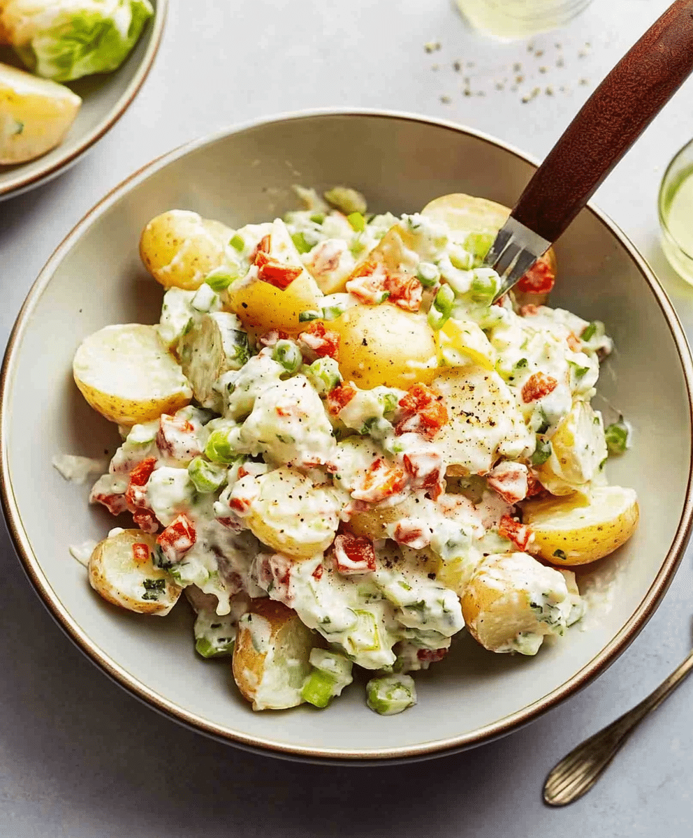 I first fell in love with this potato salad at a family reunion years ago, when my aunt served it alongside grilled burgers and corn on the cob. One spoonful, and I was hooked—it was the perfect balance of tender potatoes, zesty dressing, and a crunch that keeps you coming back for more. Now, it’s a staple in our home for every picnic, potluck, and cozy Sunday dinner.